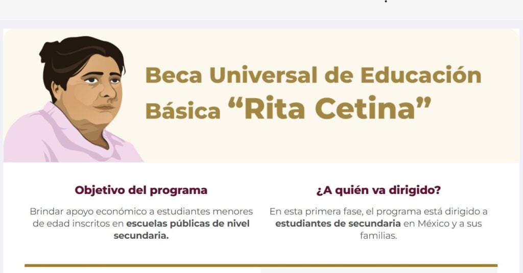 Esta iniciativa es parte de los Programas para el Bienestar del gobierno de Claudia Sheinbaum, quien en octubre pasado dijo que la Beca Rita Cetina ayudará a las familias mexicanas a cubrir gastos escolares y que los estudiantes continúen y terminen sus estudios.