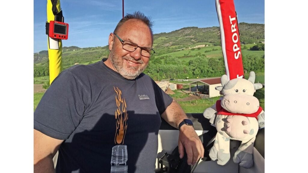 La historia detrás de mi globo aerostático ‘Blüemli’ comenzó cuando tenía una vaca de peluche que me ha acompañado en más de 1000 vuelos en globo durante muchos años. Fue un regalo de mi hijo Simón, y de ahí tomé la decisión de convertirla en un gigantesco globo aerostático. La vaca me acompaña y me recuerda siempre que debo regresar a casa después de cada vuelo. Me gusta la vaca porque es un animal acogedor y también muy interesante”.