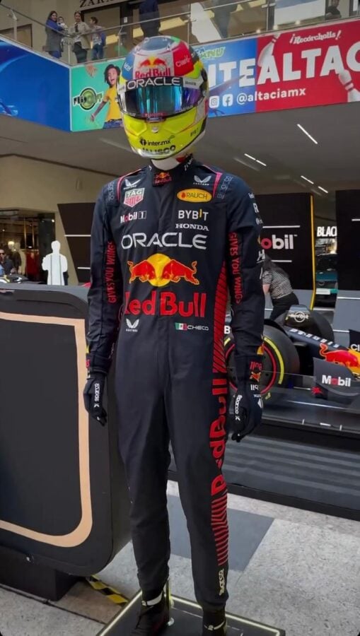 León, Guanajuato - Los amantes del automovilismo radicados en León, Guanajuato y muchos otros turistas tuvieron la oportunidad este fin de semana de tocar el auto del piloto mexicano Sergio ‘Checo’ Pérez, pues su auto Oracle Red Bull Racing RB20 estuvo exhibido en Altacia.