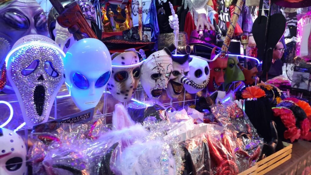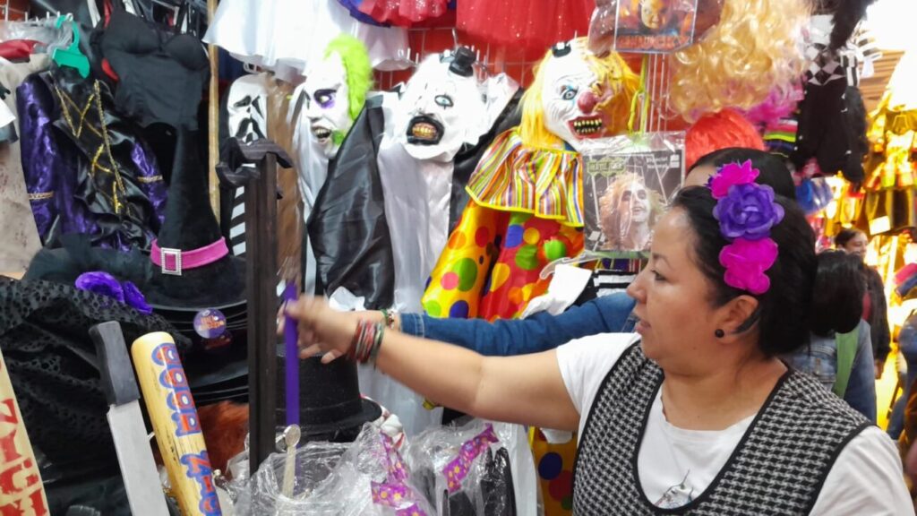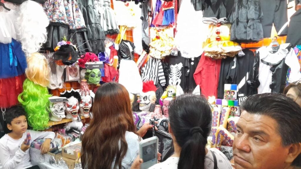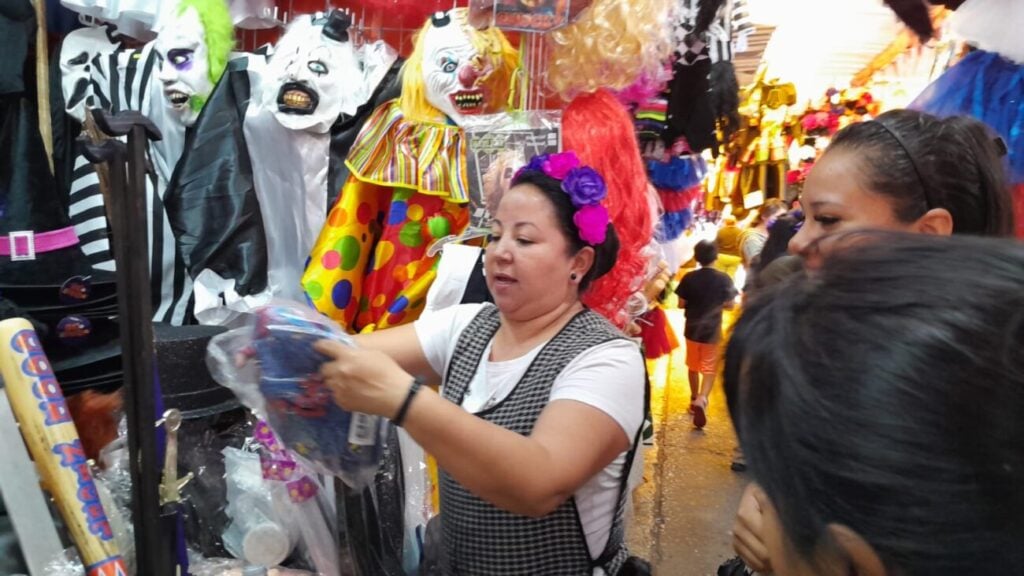 "Las máscaras las hay desde $50, gorros en $100, máscaras de led de 150 o $85 pesos, tenemos pelucas, maquillajes, accesorios, en $70 o $50 pesos … todos precios accesibles", agregó.