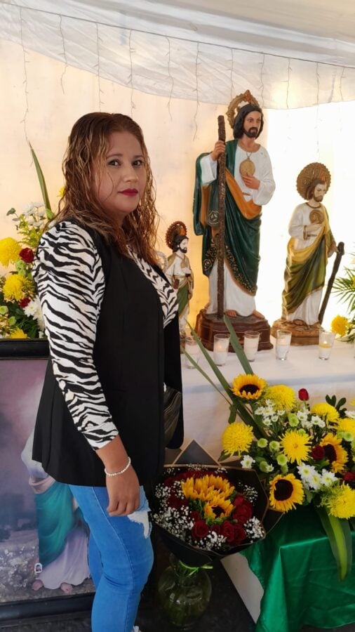 “Le hacemos honor a San Judas Tadeo porque hace 12 años exactamente tuve un accidente automovilístico con mi esposo en donde una ambulancia nos chocó en la esquina del bulevar Las Palmas y Algeciras en donde yo perdí la vida porque nos dejó prensados, pero gracias a Dios aquí estoy nuevamente porque me dio una oportunidad y estamos aprovechándola.