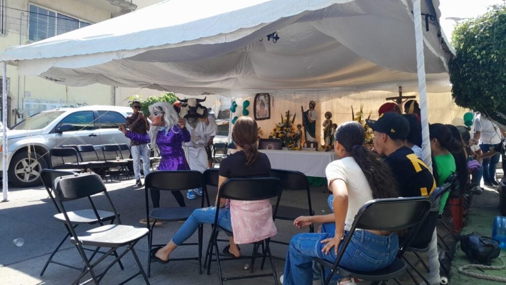 El 27 de octubre iniciaron con el rosario a las 10:30 de la noche y terminando regalaron chocolate, pan, algunos de los vecinos llevaron tamales, algunas de sus tías llevaron atole, gelatinas y varios vecinos que año con año se suman al festejo y se reúne la comunidad.