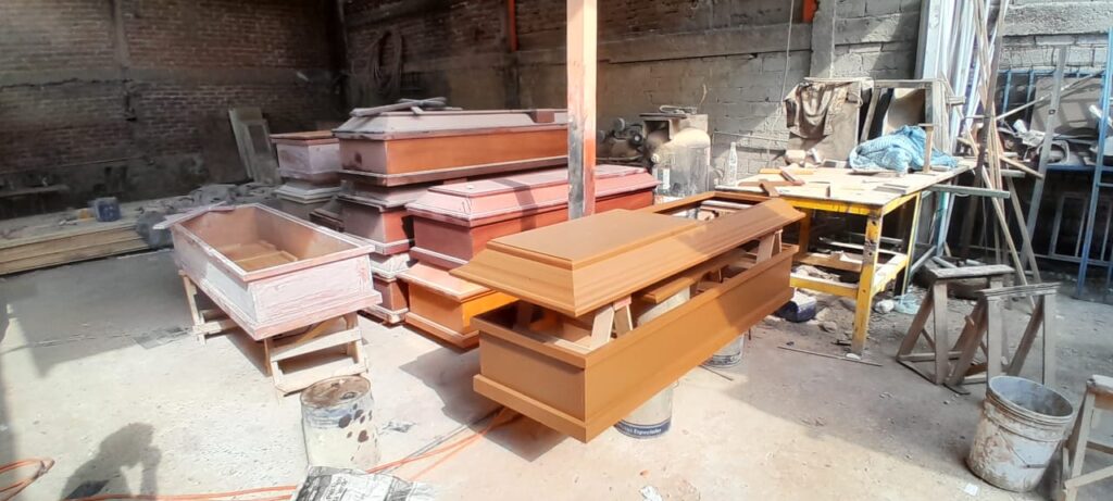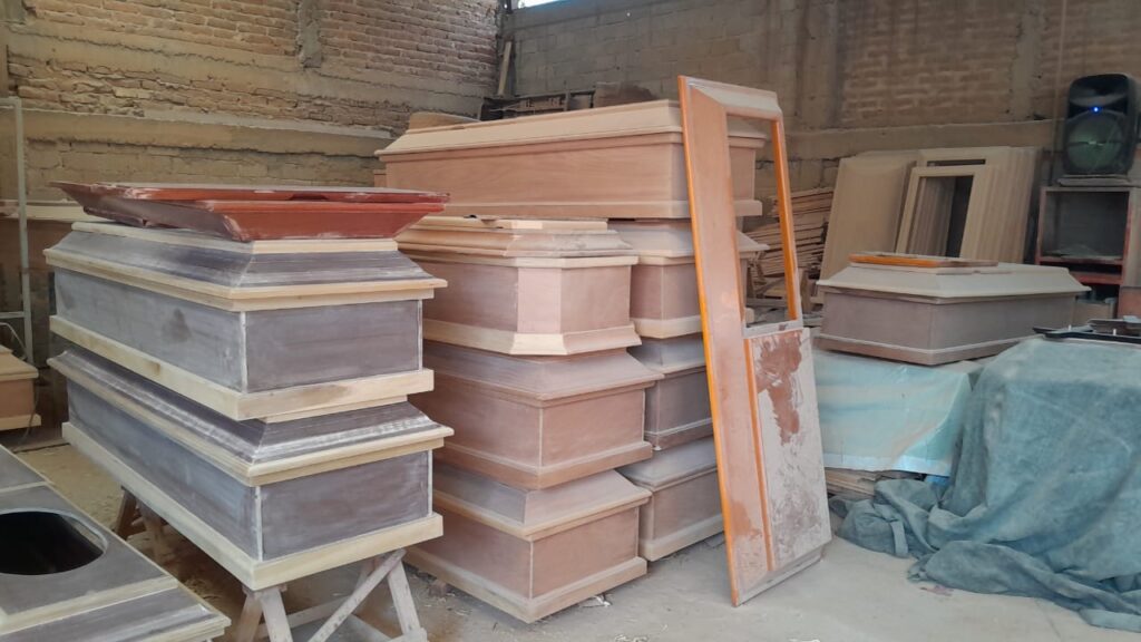 En el taller de Juan Pedro fabrican de 20 a 80 ataúdes por mes. Fotos: Daniel Martínez Macías