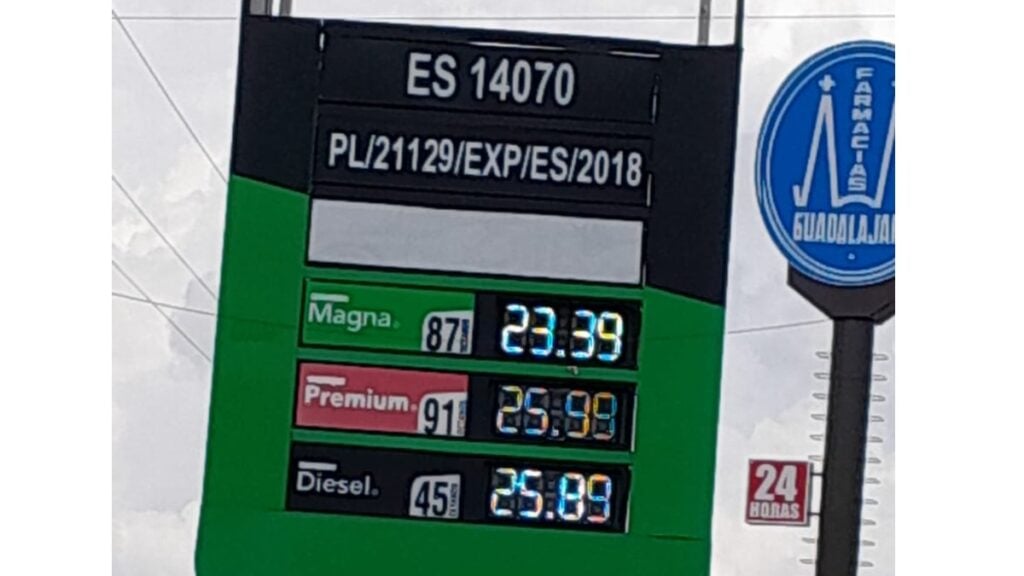 La de Mariano Escobedo y Hermanos Aldama hoy tiene el precio de $23.95 pesos por litro, mientras que la gasolinera GULF, en Prolongación Calzada y Malecón del Río, la Magna está en $23.45 pesos.