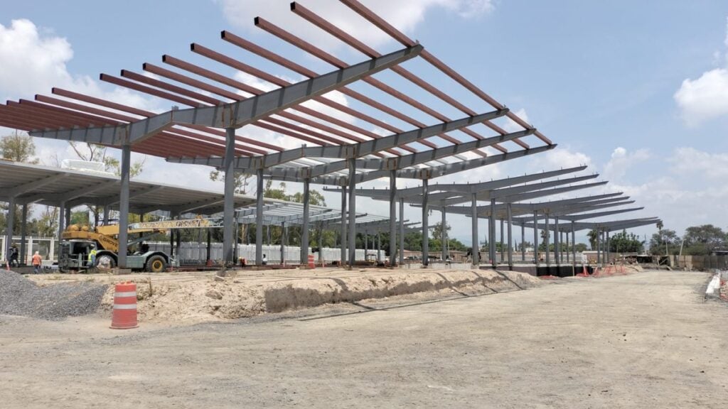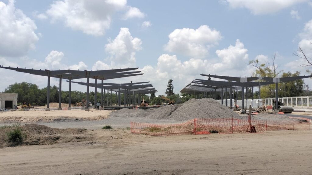 La nueva terminal de Santa Rita se desarrolla a un costado de la deportiva del bulevar Juan José Torres Landa, en una zona que estaba destinada a estacionamiento y un área sin uso que se encontraba al fondo.