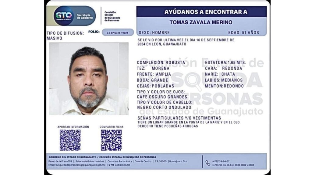De la desaparición de Tomás Zavala ya se hizo la denuncia correspondiente a la Fiscalía General del Estado de Guanajuato (FGEG).