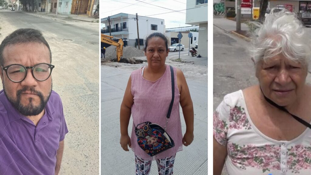 Martha Ríos, otra ciudadana, dijo: “trato de irme por donde haya lugar, y con mucho cuidado, porque también de repente las piedras que dejan sobre las aceras, o en el asfalto, son peligrosas porque las avientan con las llantas, pasan carros y en ocasiones pegan con las orillas de las llantas y las avientan con una velocidad muy fuerte. Entonces yo mejor me espero a que no haya carros, o donde haya piedras paso rápido como medida de precaución, porque hay varias calles que no están trabajando y que dejaron montañas de tierra y piedras”, especificó.