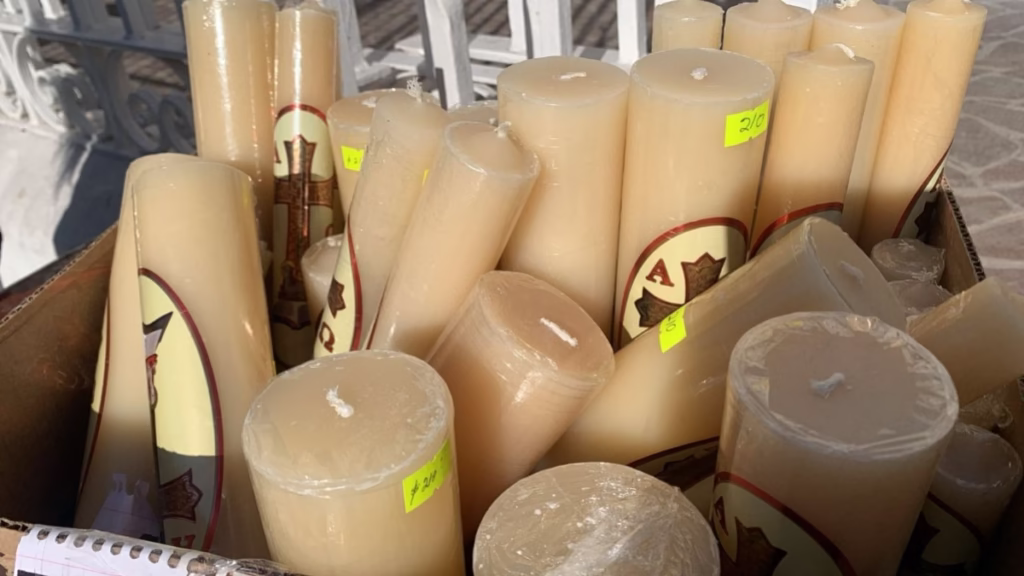 La venta de los cirios para bendecirlos el próximo Sábado Santo también aumentó. Actualmente se venden en 40, 50, 85, hasta 100 pesos, dependiendo del tamaño.
