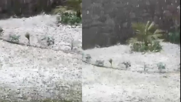 Imágenes del fenómeno se difundieron en un video viral en redes sociales, donde se observan plantas y árboles completamente cubiertos por la granizada.