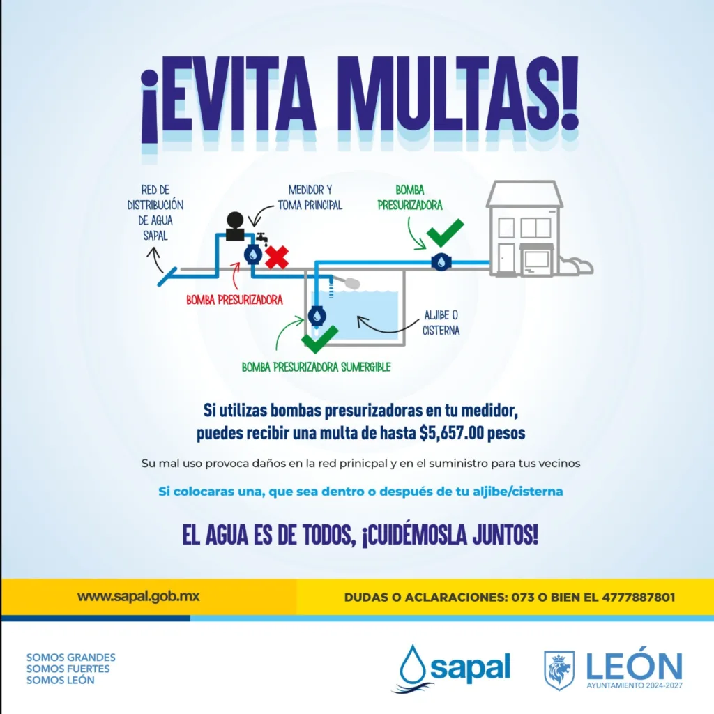 León, Guanajuato - Pon atención en donde colocas la bomba para llevar agua potable hasta tu tinaco, porque eso te podría hacer acreedor a una multa de más de cinco mil pesos.