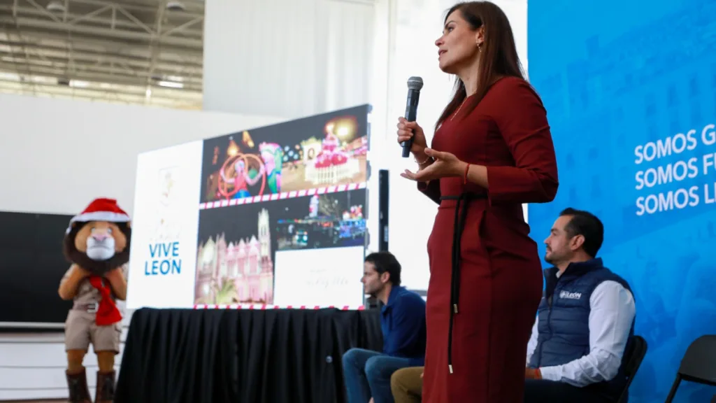 León- La alcaldesa de León, Alejandra Gutiérrez Campos, presentó la agenda del programa ‘Vive Navidad, Vive León’, una celebración que abarcará todo el municipio con espectáculos musicales, actividades culturales, talleres, festivales y posadas comunitarias. La oferta navideña estará disponible desde este lunes 1 de diciembre y hasta el 6 de enero de 2026.