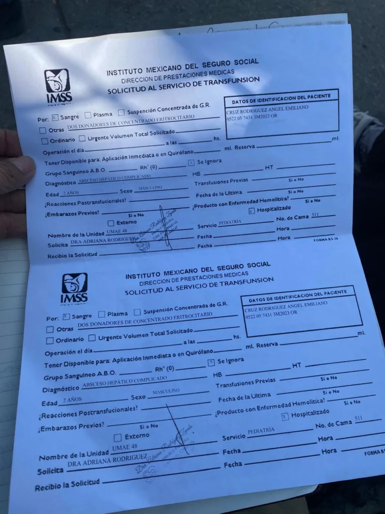 El niño fue trasladado a la Clínica T 48 del IMSS el 24 de noviembre, esto tras agravarse por lo que inicialmente se le llevó al solicitar la atención médica.