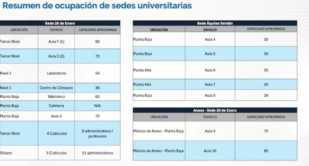 Se detalló que se utilizarán tres sedes para el regreso a las clases presenciales: Aquiles Serdán, Anexo y sede 20 de Enero.