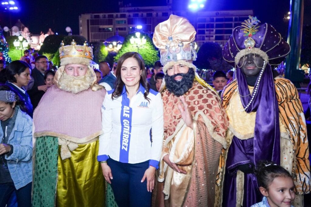 León, Guanajuato - La alcaldesa Alejandra Gutiérrez, presidenta municipal de León, en compañía de Melchor, Gaspar y Baltazar, se sumaron al espíritu festivo del Día de Reyes y entregaron 11 mil mini roscas.