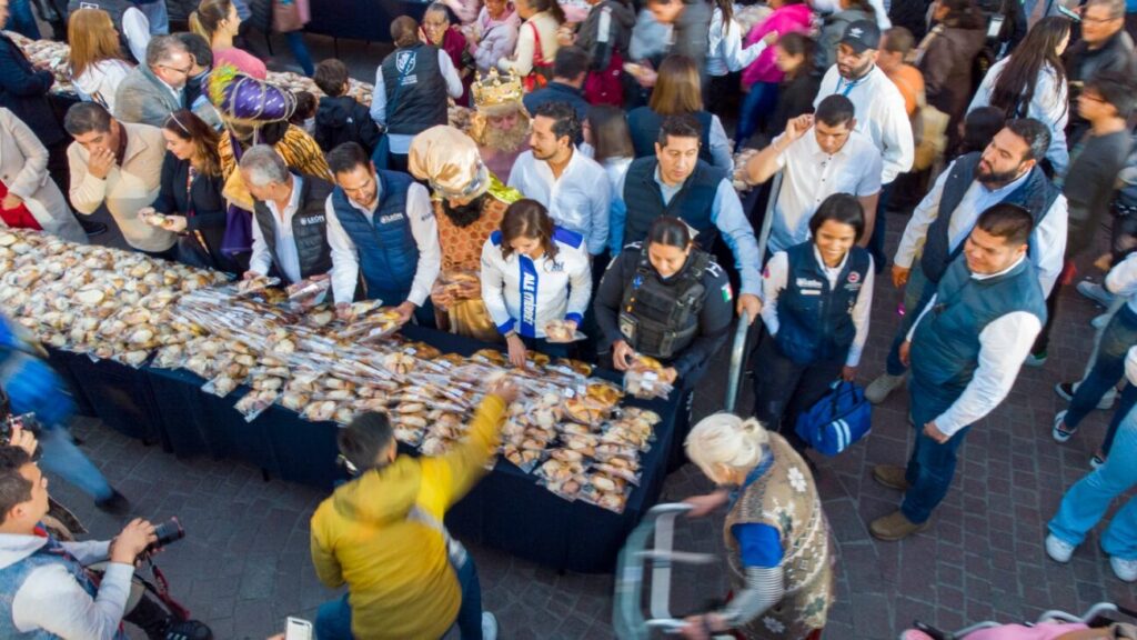 En la Plaza Principal de la ciudad hicieron entrega de 3 mil mini roscas, mientras que en la Cabalgata de Reyes, que paso por San Pedro del Monte, Las Joyas y León II, así como en la Zona Centro, se entregaron 8 mil más.