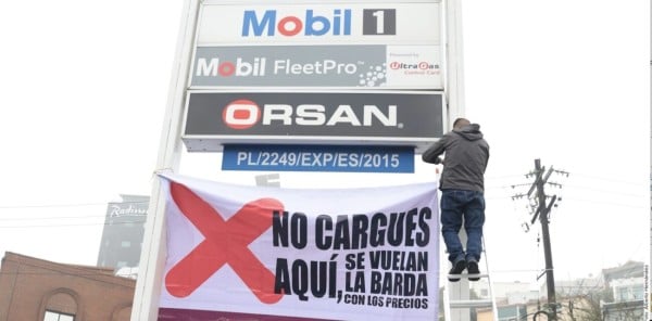 México - La Profeco informó que colocó lonas con un tache en gasolineras de Nuevo León, Durango y Guanajuato para advertir a automovilistas que no se abastecieran ahí por vender a precios altos.