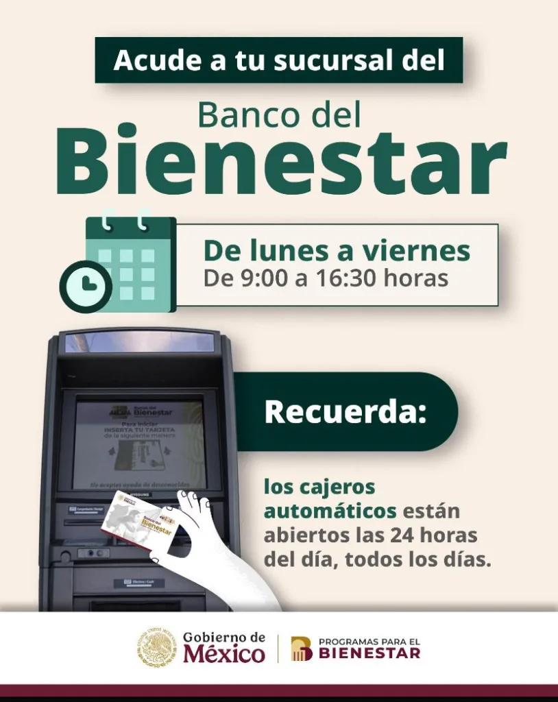 Aquí la dirección de cada una de las sucursales en las que pueden retirar en ventanilla o cajero automático, sin costo alguno por el servicio.