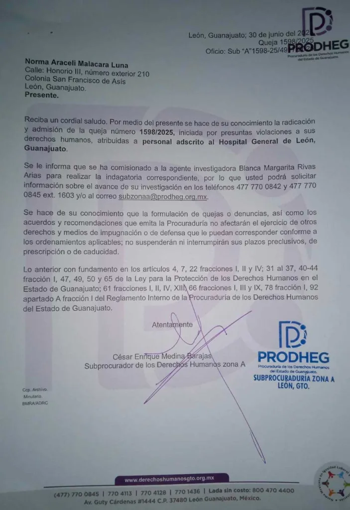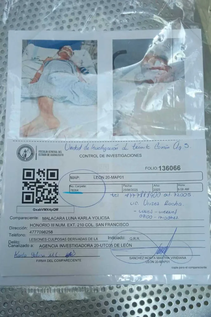 Karla finalizó al decir que se tienen denuncias en la Procuraduría General de los Derechos Humanos 1598/2025, además en la Fiscalía General del Estado de Guanajuato con el número de averiguación 78264/25 por lesiones culposas.