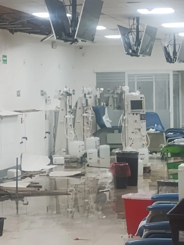 El techo en la clínica Sanefro en León colapsó con las lluvias del sábado, ahí se atienden pacientes de hemodiálisis del IMSS