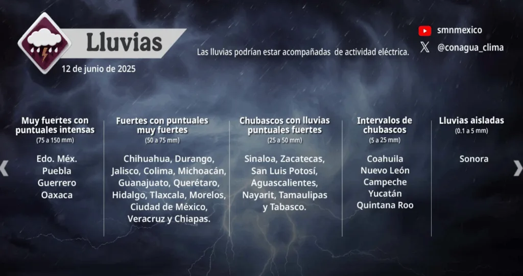 Un segundo canal de baja presión sobre la Mesa Central, donde se encuentra ubicado Guanajuato, junto con el ingreso de humedad proveniente del Océano Pacífico, Golfo de México y Mar Caribe, en combinación con inestabilidad atmosférica y una zona de baja presión con alta probabilidad de desarrollo ciclónico al sur de Guerrero, provocará lluvias puntuales muy fuertes en el estado, con acumulaciones estimadas entre 50 a 75 milímetros.