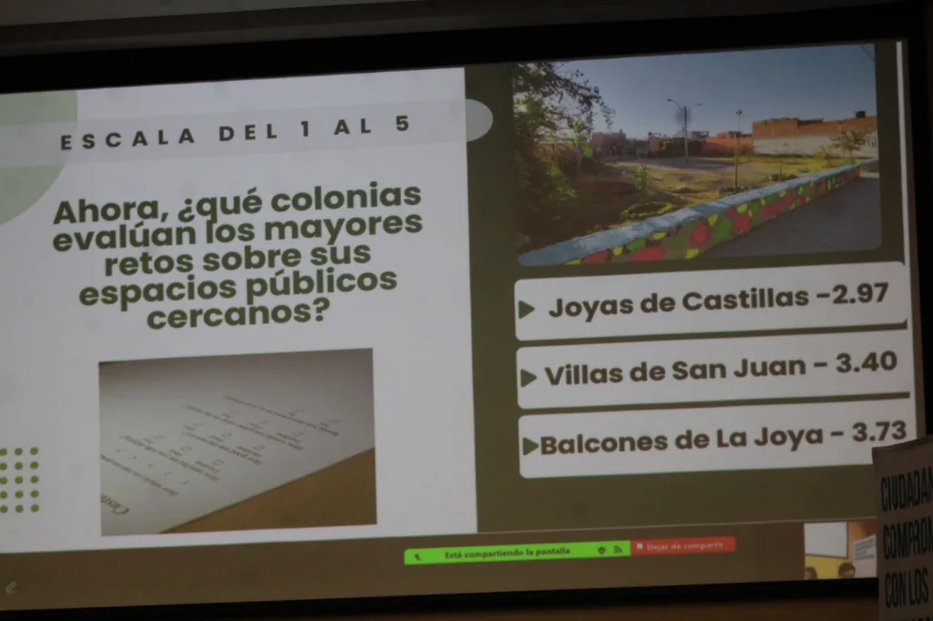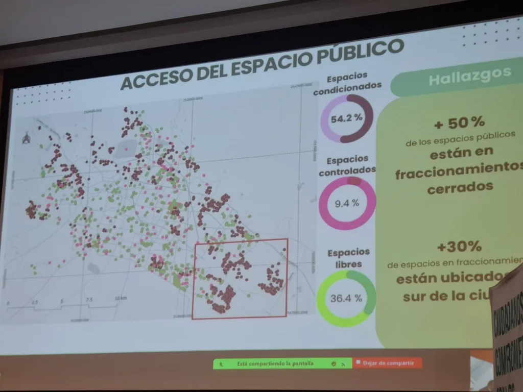 Resulta que no todos los espacios están cubriendo las necesidades, ni son para todos los usos ni cuentan con las mismas condiciones materiales. Parece ser que las zonas consolidadas tienen los mejores espacios públicos, y las no consolidadas incluso no cuentan con ellos”, lamentó.