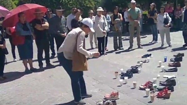 León, Guanajuato - Este sábado y domingo, ciudadanos leoneses independientes a colectivos se unieron a la llamada Vigilia y Luto Nacional con oraciones y cadenas de rosarios por las víctimas del Rancho Izaguirre en Teuchitlán, Jalisco, donde fueron encontrados al menos 400 pares de calzado, además de diversos enseres.