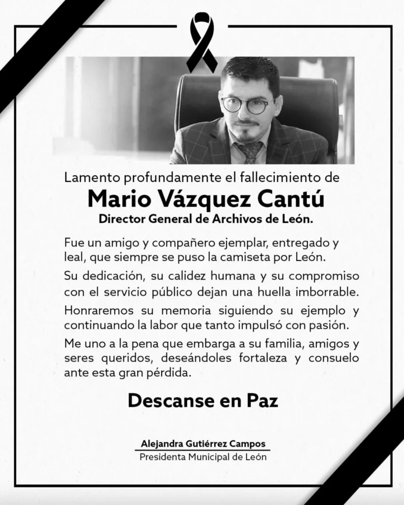 La alcaldesa Alejandra Gutiérrez Campos, a través de sus redes sociales, informó del deceso del funcionario municipal de 42 años, de quien se expresó como un amigo y compañero ejemplar, entregado y leal, que siempre se puso la camiseta por León.