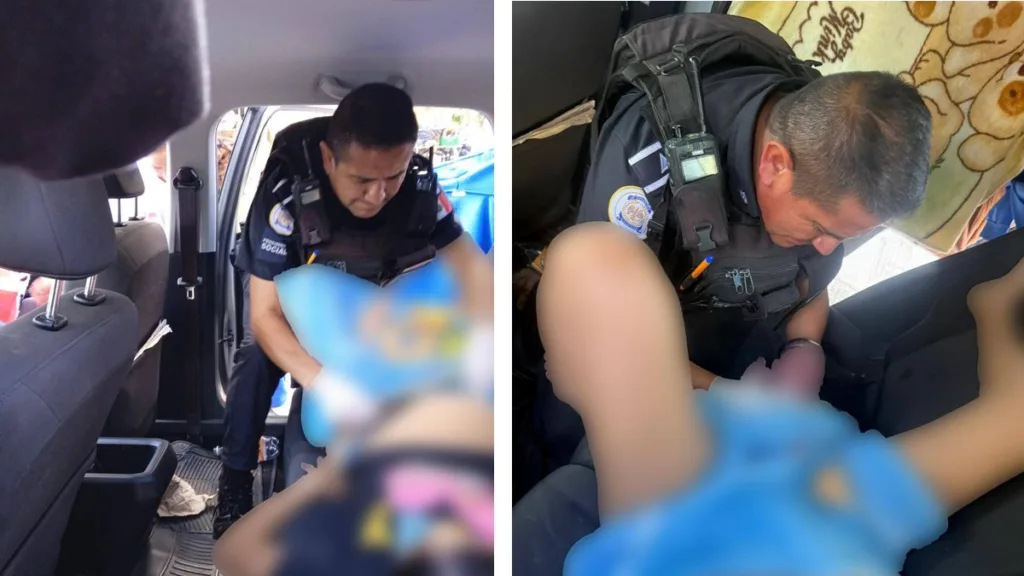 Al acercarse, los policías confirmaron que el nacimiento era inminente, por lo que brindaron asistencia inmediata. A las 15:39 horas, la joven madre, dio a luz a un bebé varón en el interior del vehículo.