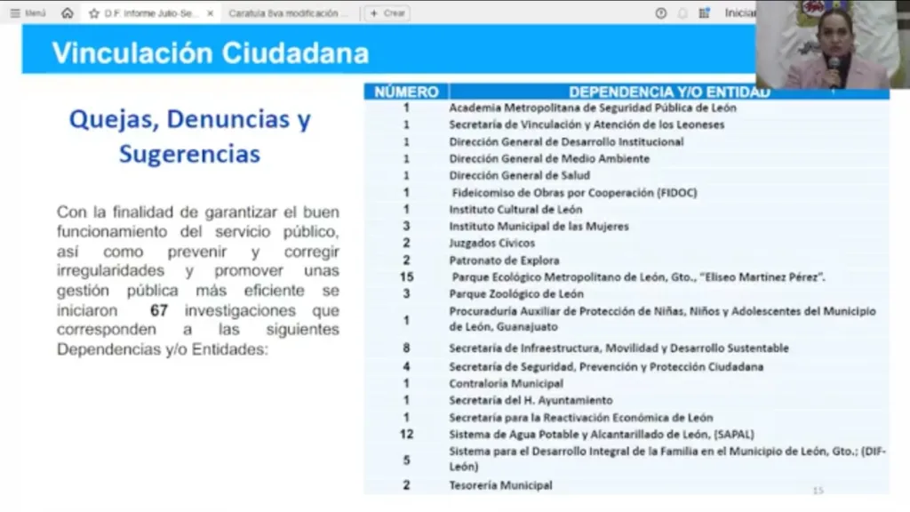 La contralora municipal informó que hay 67 investigaciones contra varias dependencias, de las cuales dos ya concluyeron