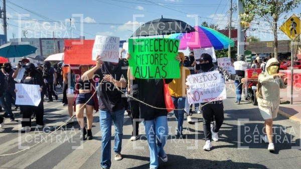 Cerca de 150 estudiantes comenzaron a marchar antes de las 2 de la tarde a la altura de Centro Max para condenar lo que consideran malos manejos por parte de la directora Lourdes Almaguer y el subsecretario.