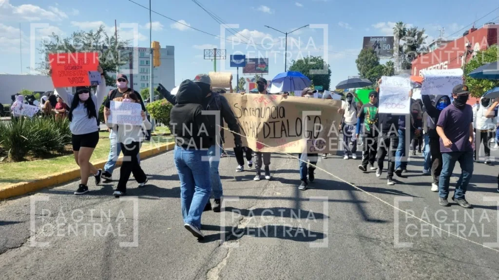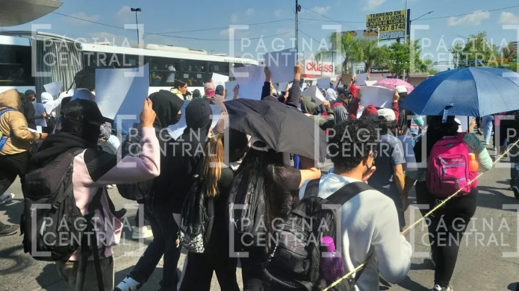 Cerca de las 2:15 de la tarde, los estudiantes, con pancartas y gritando protestas, ya estaban a la altura de Altacia en los carriles con sentido hacia Silao.