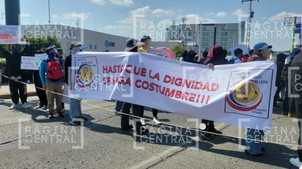León, Guanajuato - Este jueves, estudiantes del Instituto Tecnológico de León vuelven a participar en una manifestación y a tomar el bulevar Adolfo López Mateos para exigir la renuncia inmediata e irrevocable de la directora y del subsecretario.