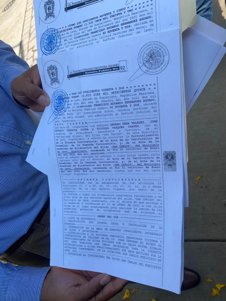 El abogado mostró un documento en el que afirmó que “se siguieron aquellos lineamientos que en su momento se propusieron por parte del comisario ejidal, y por ello es que pudimos, incluso, protocolizar estos documentos, si no, no se podría realizar”.