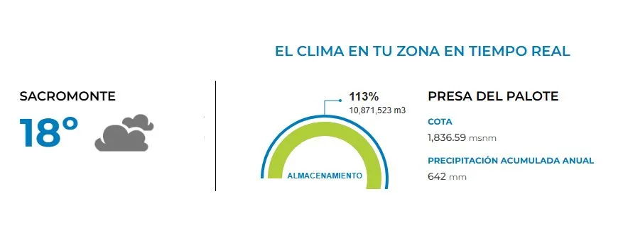 La plataforma de Sapal informó que la presa El Palote incrementó nuevamente su nivel y actualmente está al 113 % de su capacidad mínima.