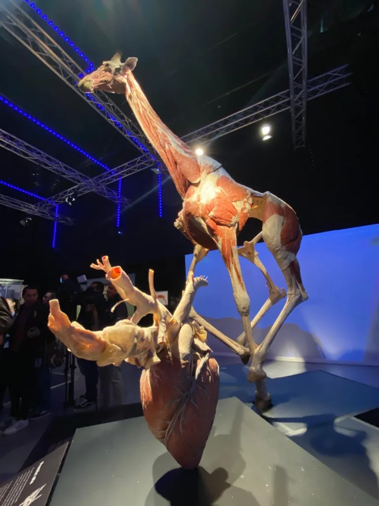 En las salas de Explora se podrá observar con detalle la conformación de una jirafa de más de cinco metros de altura, conocer su estructura muscular, huesos, el tamaño de su corazón y detalles imposibles de conocer, si no es a través de esta exposición.
