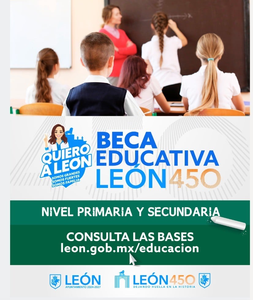 León, Guanajuato - La convocatoria para obtener la Beca Educativa León 450 ya está abierta, para que estudiantes de primaria y secundaria puedan recibir un apoyo único de 4 mil pesos.