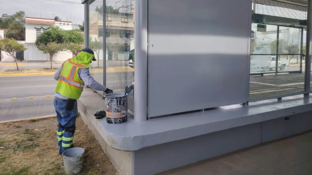 León, Guanajuato - La Dirección General de Movilidad, en coordinación con el Sistema Integrado de Transporte (SIT), intervino 205 paradas oficiales en distintos puntos de la ciudad, donde se realizaron trabajos de mantenimiento y pintura para optimizar su funcionalidad e imagen.