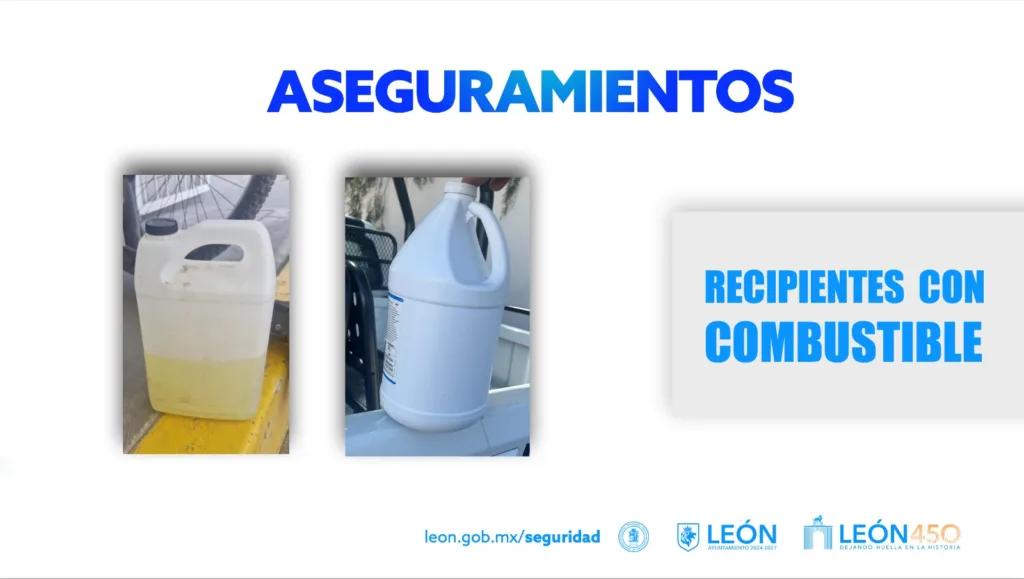 León, Guanajuato - La jornada de violencia trasladada de Jalisco a León dejó como saldo 15 personas detenidas, quienes portaban listados de sitios para incendiar, planes que fueron contenidos oportunamente.