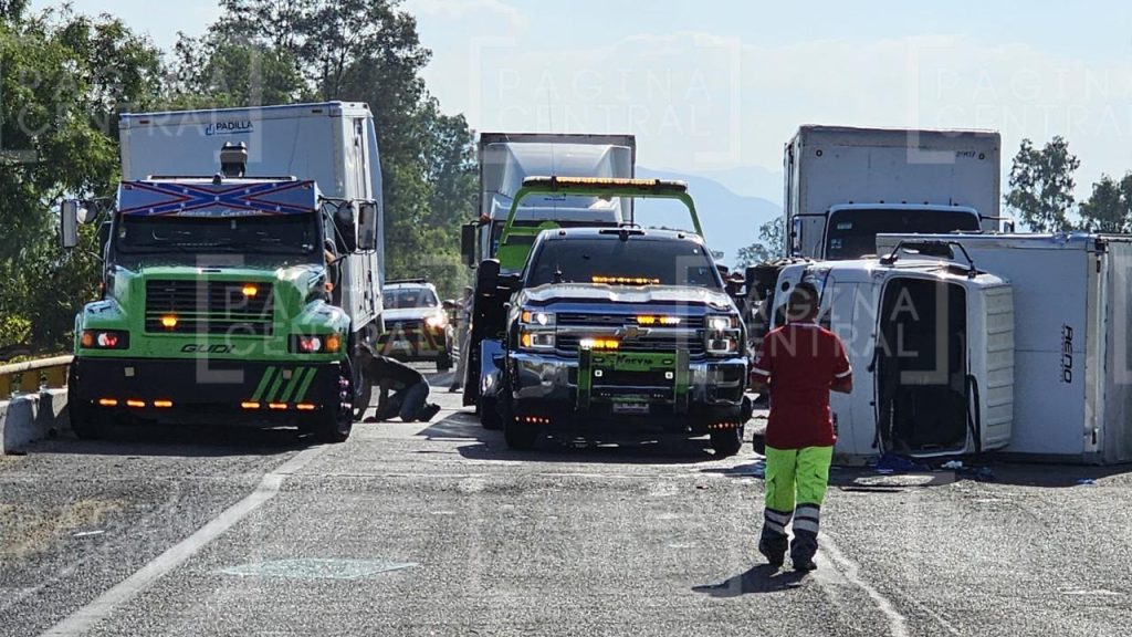Camiones de carga protagonizan choque y volcadura en la Maxipista León-Aguascalientes