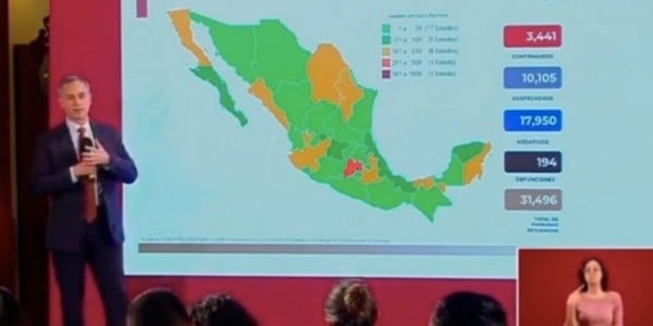Además se informó que ya han fallecido 194 personas y los casos confirmados ya suman 3 mil 441.