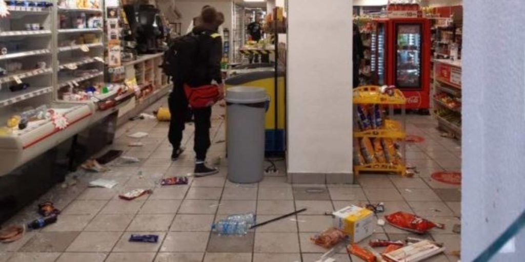 Los manifestantes rompieron los cristales de los negocios y tomaron productos como papas, botellas de agua, cigarros, refrescos y otros insumos que regalaron a personas en situación de vulnerabilidad.