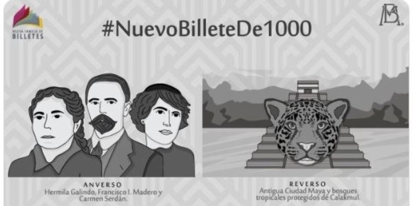 En el anverso del billete aparecerán los personajes históricos Hemilia Galindo, Carmen Serdán y Francisco I. Madero.