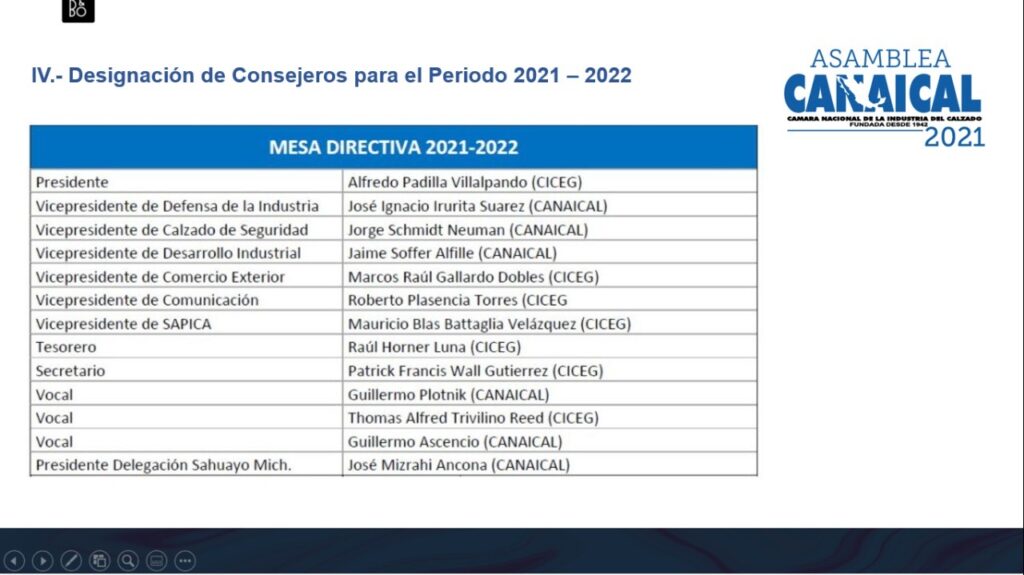 Esto como parte de los acuerdos tomados en la Asamblea General Ordinaria para elegir al Consejo Directivo de CANAICAL, que se realizó de manera virtual este 15 de abril.