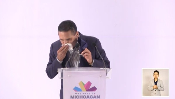 Silvano Aureoles, gobernador de Michoacán, sufrió una hemorragia nasal mientras daba una conferencia de prensa este lunes.