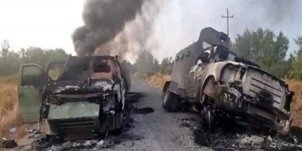 En los límites entre el estado de Tamaulipas y Nuevo León, en la zona norte, se registró un enfrentamiento entre pistoleros del Cártel Del Noreste y Cártel Del Golfo dejando como resultado seis vehículos conocidos como ‘monstruos’ incendiados y dos individuos muertos dentro de estos.
