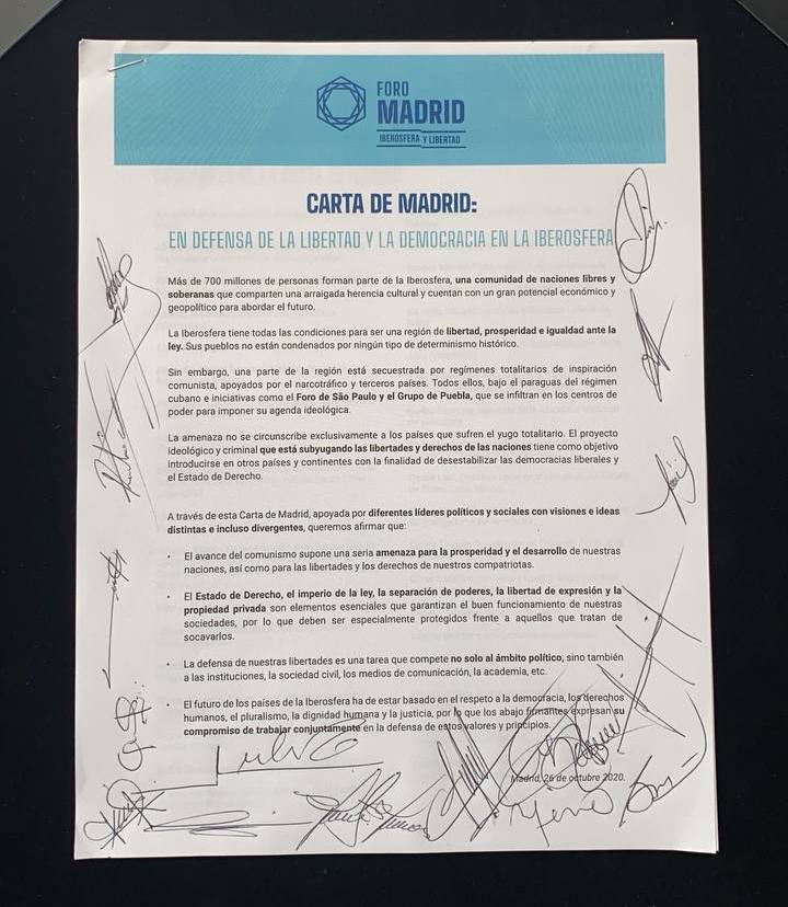 Con esta firma argumentan que se unirán para defender la libertad, democracia y la propiedad privada.