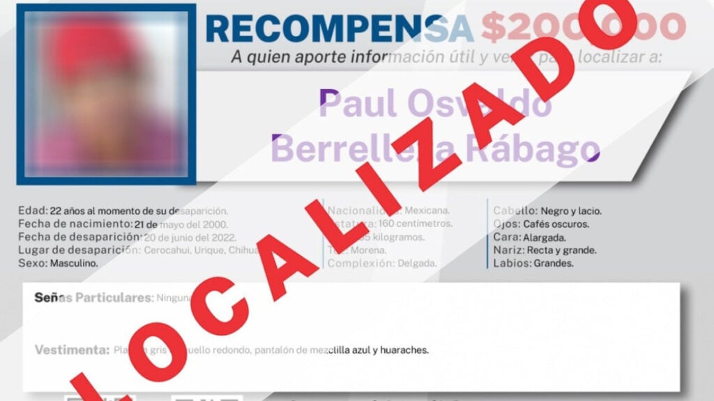 A través de un comunicado se dio a conocer que como resultado de los operativos conjuntos implementados en la zona serrana, en los que participan la Secretaría de la Defensa Nacional, Guardia Nacional, Secretaría de Seguridad Pública del Estado y la Fiscalía General del Estado de Chihuahua, se logró localizar a los hermanos Berrelleza Rábago, quienes habían sido vistos por última vez el 20 de junio en la comunidad de Cerocahui, municipio de Urique.