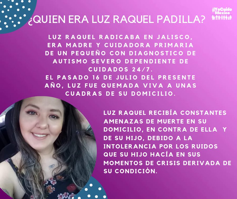Luz Raquel Padilla Gutiérrez, mamá de un niño con condición de autismo, falleció tres días después de ser atacada con alcohol y fuego en Zapopan, Jalisco; previamente ya había denunciado amenazas de muerte por parte de un vecino. Nadie hizo nada.