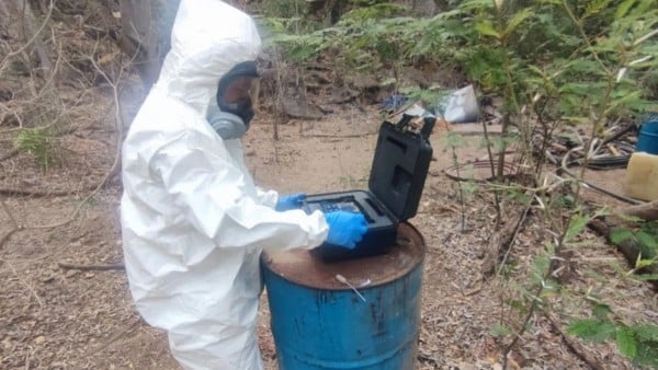 Aparte, en el primer laboratorio se encontraron 400 litros de methanol, 240 litros de acetocarmin y 10 tambos de 200 litros vacíos.