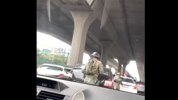 El comisario comentó que llevaban un desfase físico de 8 a 10 minutos, y en el municipio de Naucalpan, le dieron alcance al marcar una distancia de 300 metros, por lo que en el Periférico Norte se pudo observar a elementos de la Marina y Ejército revisando unidades.